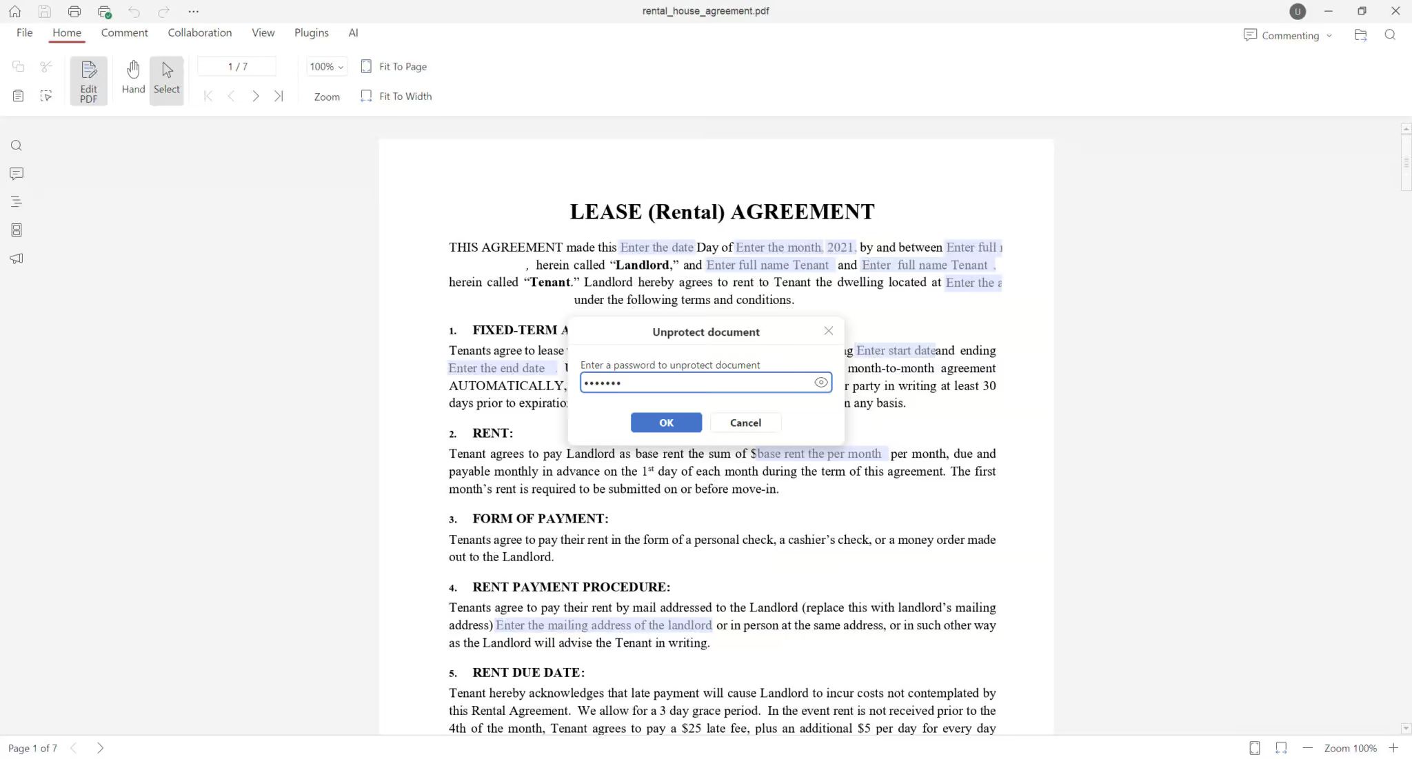 Да, если известен пароль, документ можно разблокировать и редактировать прямо в редакторе.
