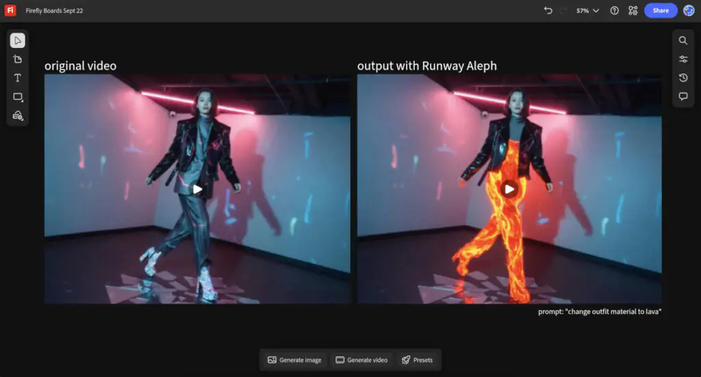 Параллельно Adobe выпустила во всем мире Firefly Boards, платформу, предназначенную для коллективного творческого мышления. Здесь основное внимание уделяется уже не точечному редактированию, а командной работе, исследованию концепций и созданию ресурсов из нескольких сред. Firefly Boards объединяет модели генерации видео, такие как Runway Aleph и Moonvalley Marey, а также новые функции, такие как пресеты для быстрых сценариев, Describe Image для генерации текста из изображений и Generative Text Edit для контекстной перезаписи. Это эволюция концепции moodboard, которая теперь дополнена инструментами искусственного интеллекта в реальном времени.