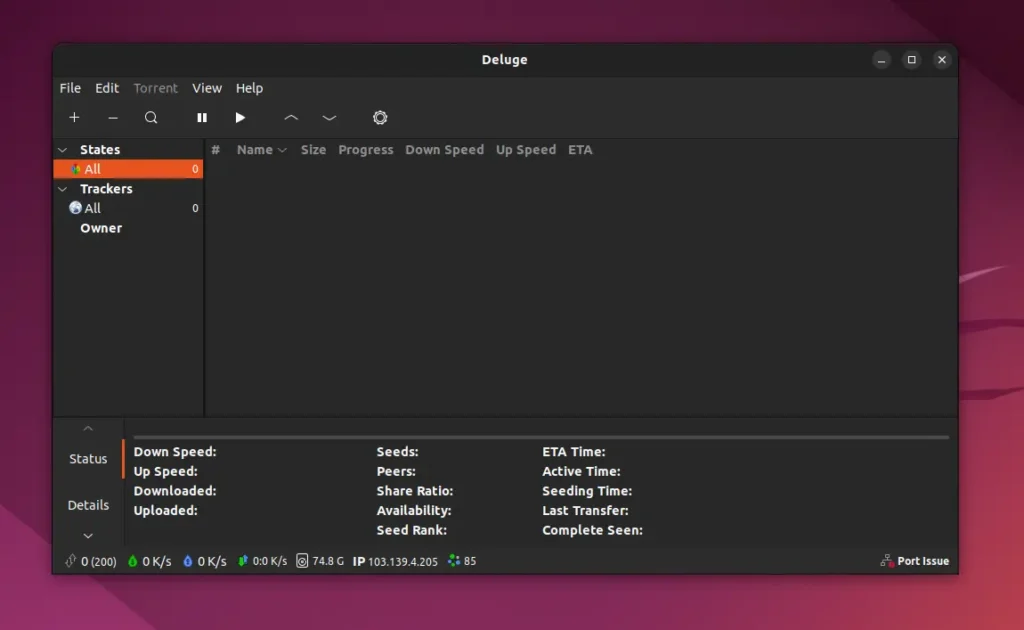 Здесь вы можете начать использовать Deluge, как и любое другое клиентское приложение BitTorrent. Кривая обучения практически нулевая: после ознакомления с несколькими опциями вы быстро разберетесь, как им пользоваться.