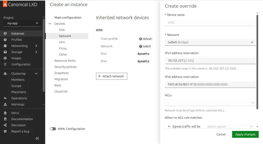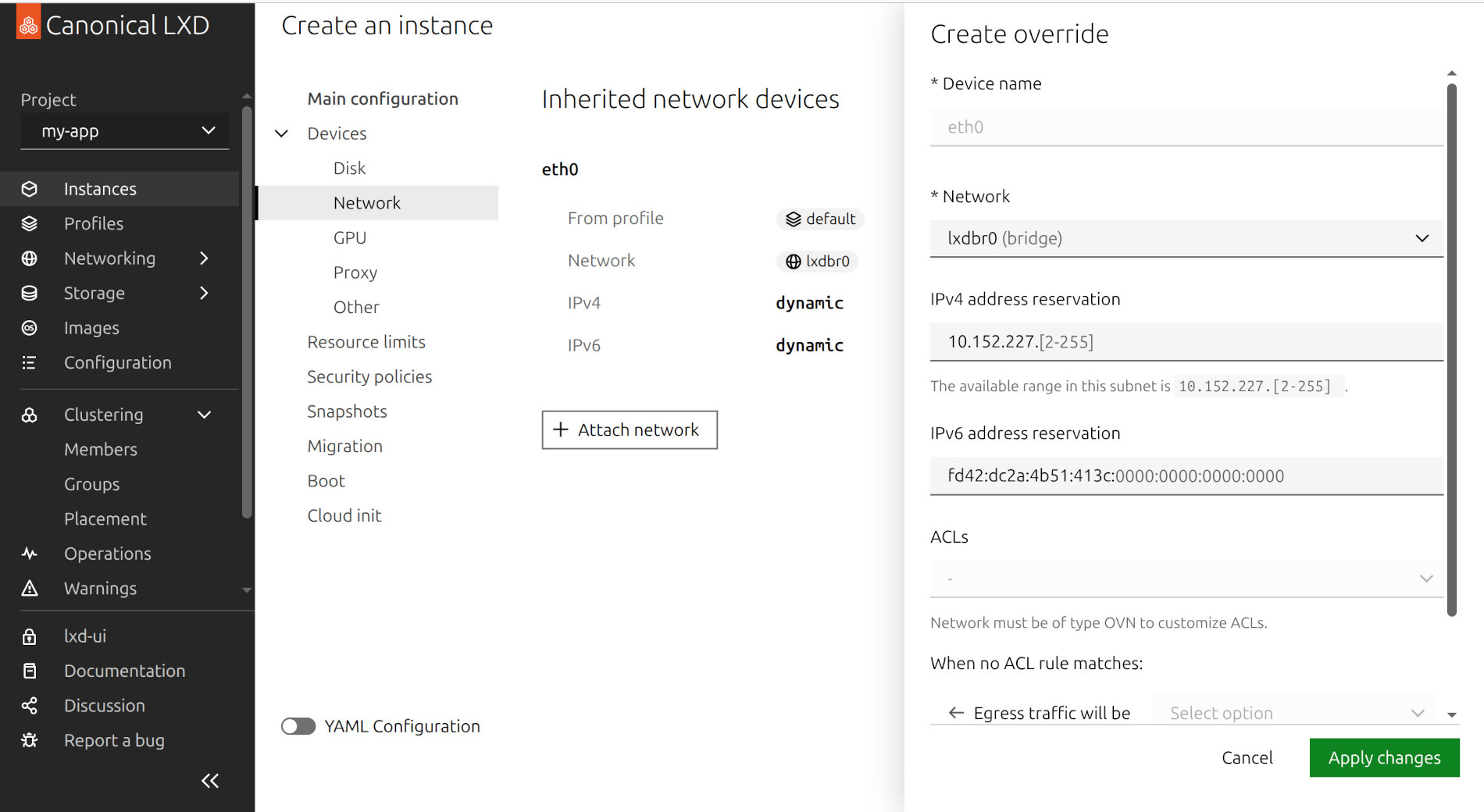 Веб-интерфейс получил ряд улучшений, повышающих удобство использования. Теперь доступ к пользовательскому интерфейсу LXD стал проще, а группы размещения можно настраивать при создании экземпляра. Улучшения в настройке сети включают резервирование IP-адресов и управление списками контроля доступа непосредственно в пользовательском интерфейсе.