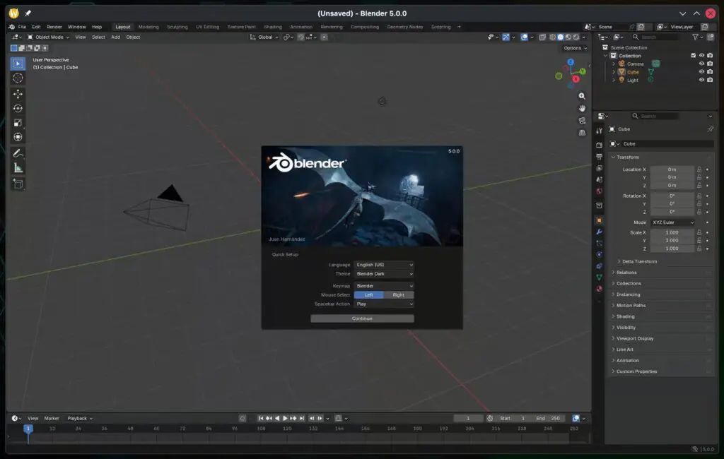 Что касается пользовательского интерфейса, то при первом запуске Blender 5.0 он выглядит иначе. Разработчики унифицировали систему тем, убрав более 300 опций, что стало одним из крупнейших структурных изменений за последние годы и сделало создание и поддержку пользовательских тем более управляемыми. Однако в результате некоторые существующие пользовательские темы, созданные для Blender 4.5, могут перестать работать.