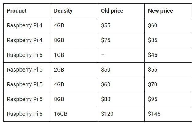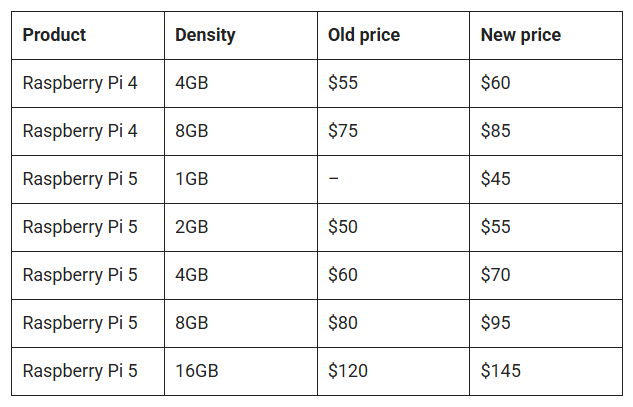 Raspberry Pi 5 с 1 ГБ и повышение цен