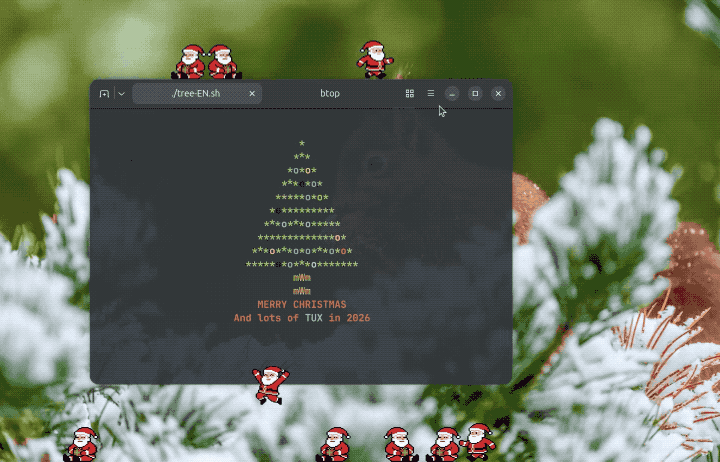 В прошлые годы я показывал вам различные способы украсить Ubuntu к Рождеству, например, добавить эффект падающего снега на рабочий стол, отобразить в терминале украшенную гирляндами рождественскую ёлку и выбрать из множества зимних обоев.