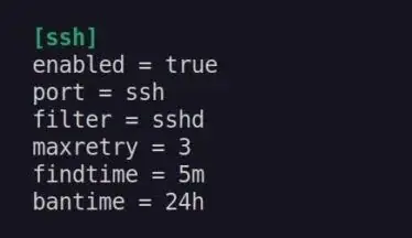 В первую очередь мы сосредоточимся на изменении файла jail.conf для настройки Fail2Ban на предотвращение атак методом перебора. Итак, что содержит этот файл? Он включает в себя конфигурацию по умолчанию для различных служб, таких как SSH.
