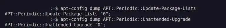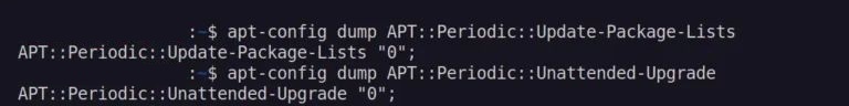 $ apt-config dump APT::Periodic::Update-Package-Lists $ apt-config dump APT::Periodic::Unattended-Upgrade