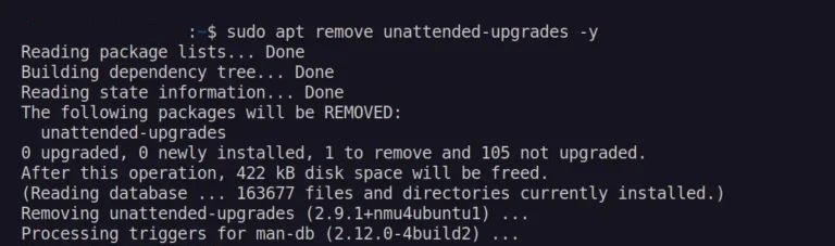 Чтобы устранить первопричину вашего стресса, вы можете навсегда отключить автоматические обновления, удалив пакет unattended-upgrades из Ubuntu с помощью этой команды.