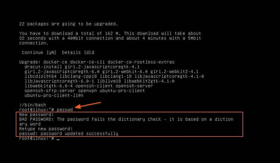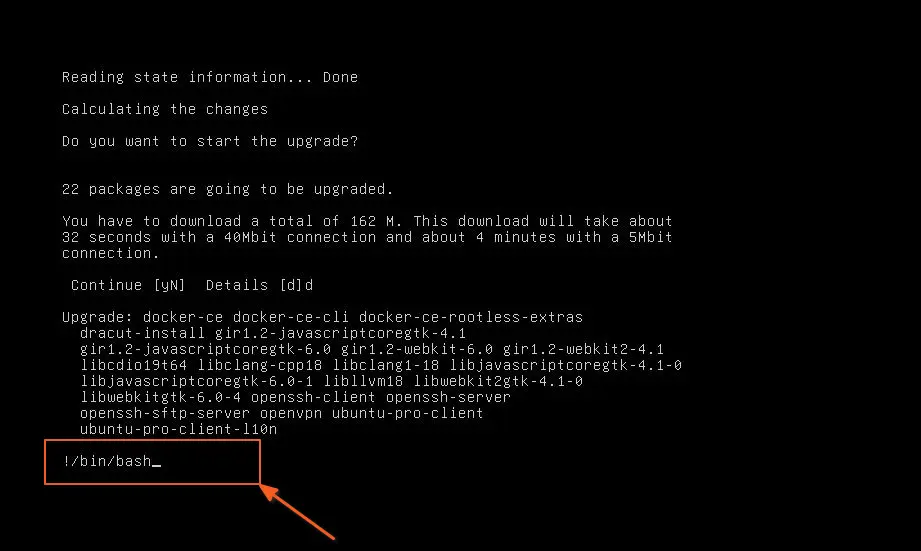 Будут выведены сведения о пакете, и вы также сможете что-нибудь написать на экране. Таким образом, чтобы получить доступ к корневой оболочке, введите следующую команду:
