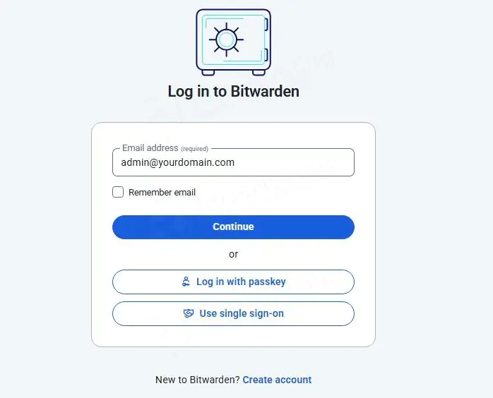 Чтобы завершить установку Bitwarden в Ubuntu 24.04, перейдите по URL-адресу, который вы указали при установке: http://yourdomain.com.