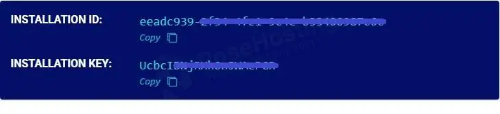 Сохраните ключ и идентификатор, они понадобятся вам для установки.