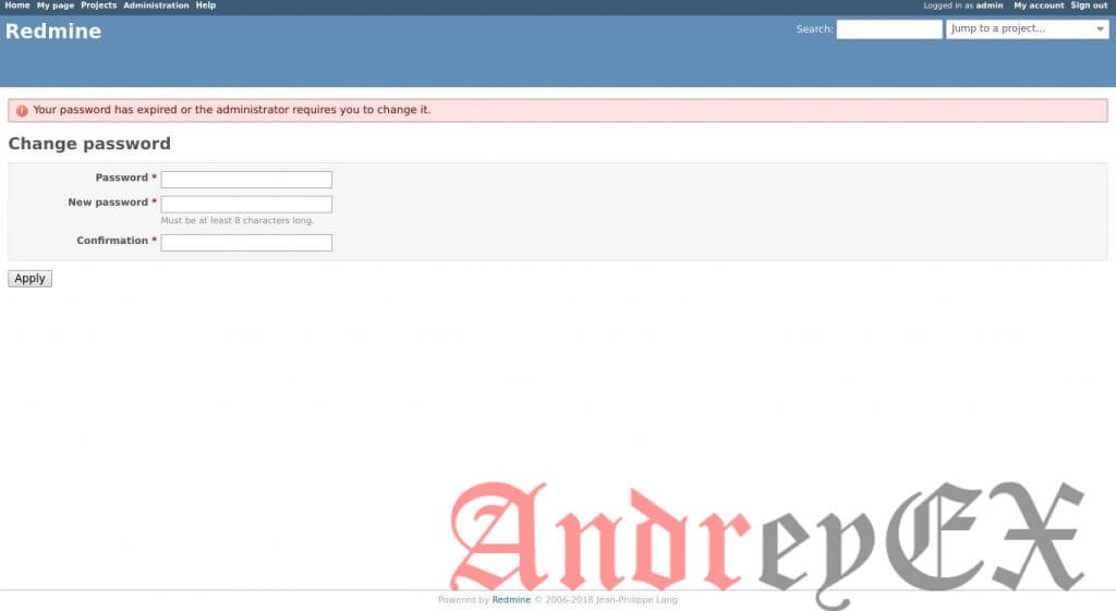 При первом входе в систему вам будет предложено изменить пароль, как показано ниже: