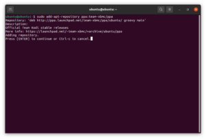 Чтобы добавить PPA, сначала запустите терминал и выполните приведенную ниже команду: