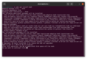 Введите «Y», когда вас попросят продолжить установку. После установки вы можете просмотреть приложение, нажав клавишу «Super» и набрав «Kodi».