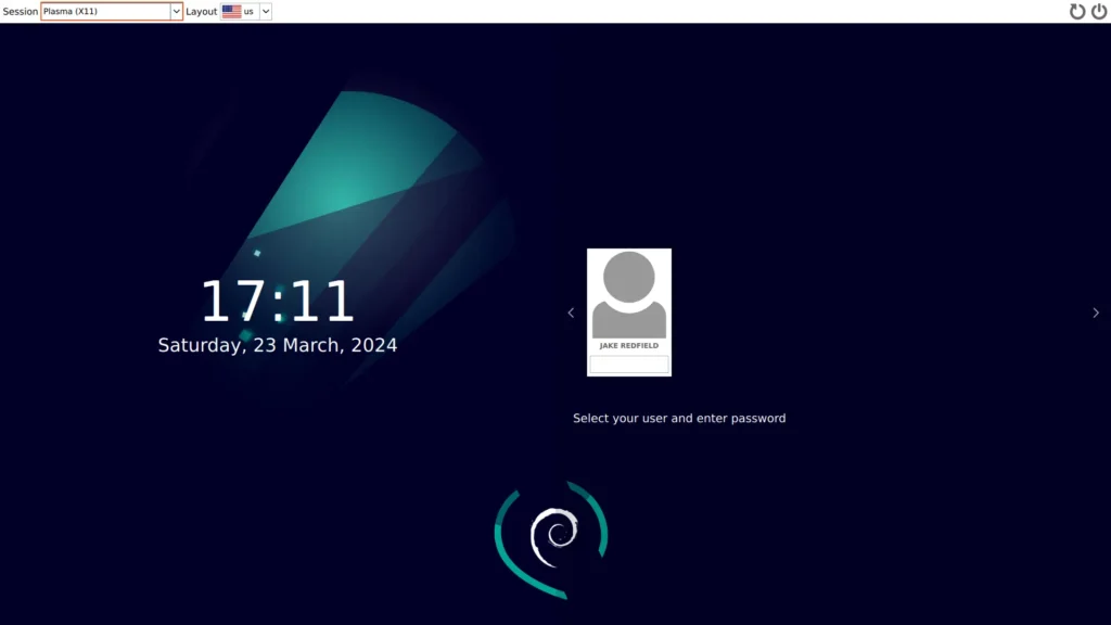 Здесь вы можете начать использовать KDE в качестве среды рабочего стола по умолчанию. Если вы хотите переключиться на GNOME, выберите сеанс GNOME в левом верхнем углу экрана входа в систему.
