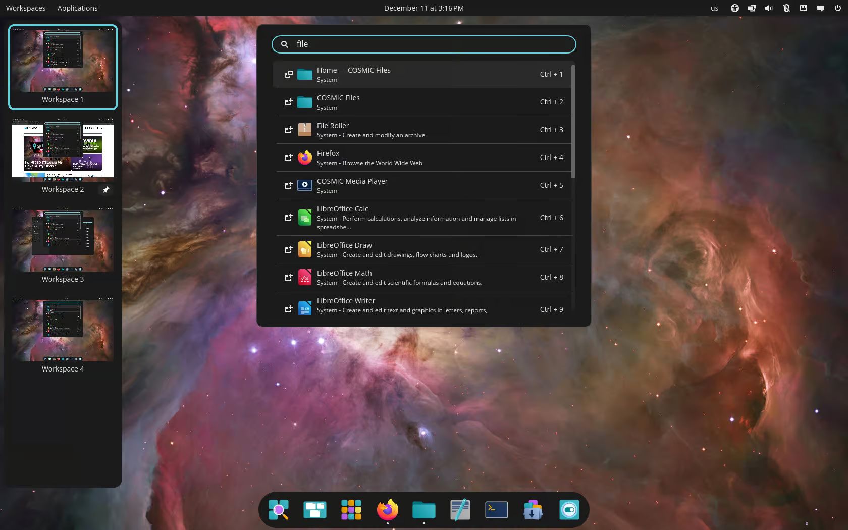 COSMIC, полностью написанный на Rust и спроектированный как модульная, компонуемая среда, отличается более быстрым интерфейсом, улучшенной отзывчивостью и рабочим процессом, основанным на тайлинге, расширенных рабочих пространствах и оптимизированной навигации.