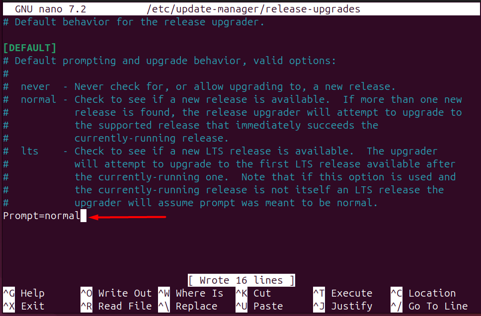 - Если вы используете Ubuntu 24.04 LTS, вам необходимо включить обновление выпуска, не относящегося к LTS. Для этого откройте файл release-upgrader в редакторе: