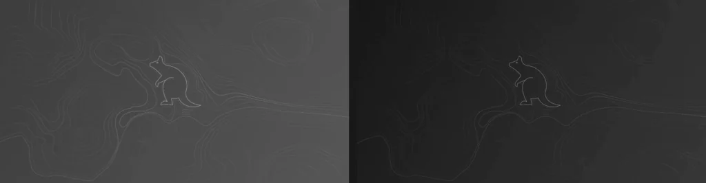 Команда дизайнеров Canonical также создала набор из четырех альтернативных дизайнов. В «полных» вариантах топография карты занимает всю ширину обоев, а «квестовый» элемент отсутствует в цветномтемномсветлом и приглушенном вариантах: