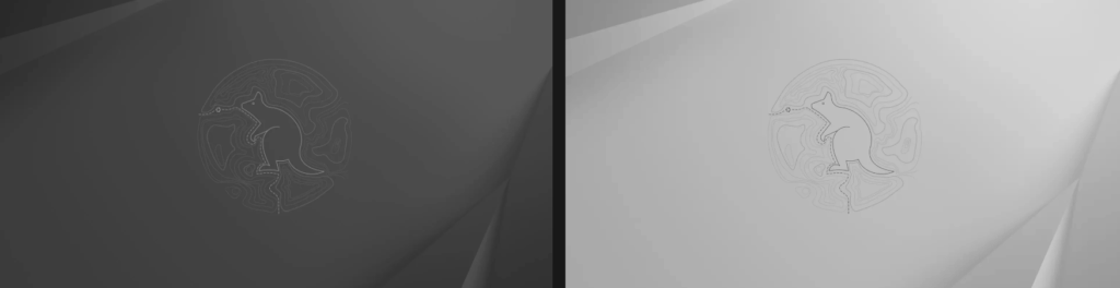 Команда дизайнеров Canonical также создала набор из четырех альтернативных дизайнов. В «полных» вариантах топография карты занимает всю ширину обоев, а «квестовый» элемент отсутствует в цветномтемномсветлом и приглушенном вариантах: