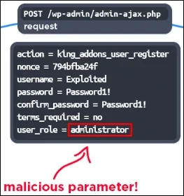 Согласно наблюдениям Wordfence, злоумышленники отправляют специально подготовленный запрос admin-ajax.php с указанием user_role=administrator, чтобы создать мошеннические учётные записи администраторов на целевых сайтах.